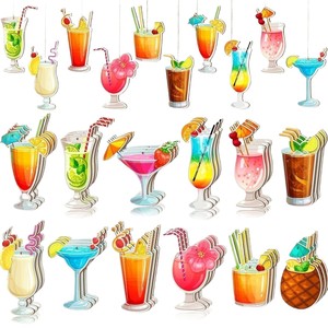 夏の木製カクテルペンダントクリスマスツリー装飾ハワイビーチ装飾ペンダントひも付きハワイパーティー