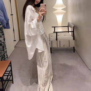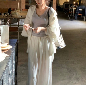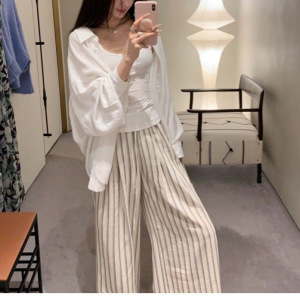 あち大も池の白い天糸亜麻の襟のシャツの女性の長袖の怠惰でゆったりとした通気性の日焼け止めの上着