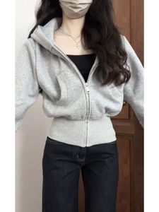 アメリカンレトロな女性用ショート長袖フード付きスウェットシャツ、春、秋、冬の新しいスタイルのウエスト痩身プラスベルベットの厚いジャケットトップ