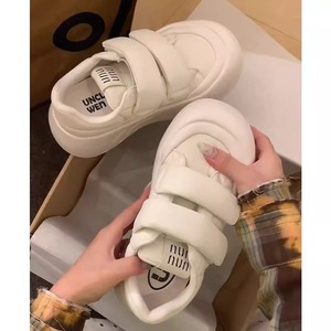 女性用ラウンドトゥ厚底ラージトゥシューズ2025春ベルクロカジュアルシューズ醜くてかわいいスポーツシューズ身長を伸ばす多用途の白い靴