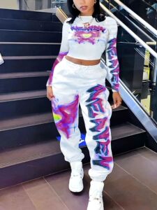 ヨーロッパとアメリカの国境を越えた 2025 ファッショナブルなスポーツとレジャーのプリント長袖ズボンと脚の袖口のセット