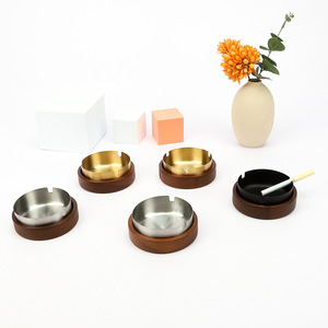 ウォールナット色の無垢材灰皿パーソナライズされたアカシア灰皿家庭用防汚オフィスステンレス鋼蓋付き