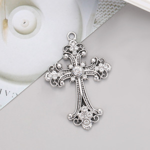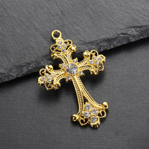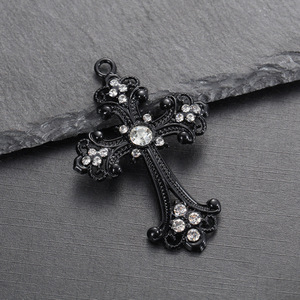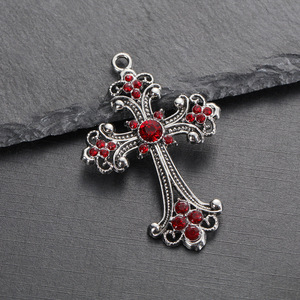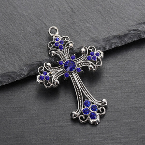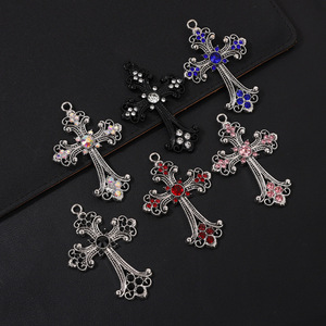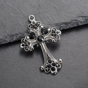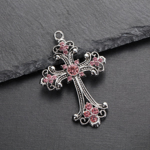 パーソナライズされたレトロなファッションフラッシュダイヤモンド合金ローズクロスジュエリーアクセサリーヨーロッパとアメリカの人気のネックレスペンダント卸売