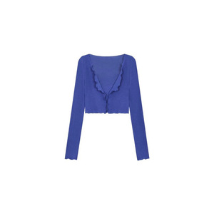 ブルーのシングルカーディガン
