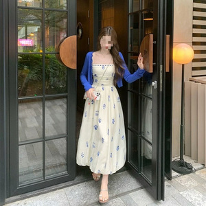 新しい中国風のEIA Yiyaoフレンチサスペンダードレスサマーバドスカート+カーディガン