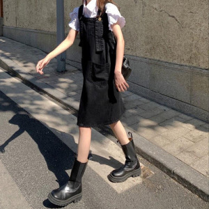 2025 新しい夏のホルターネックノースリーブデニムドレス女性のデザインニッチウエスト痩身気質 A ラインスカート