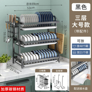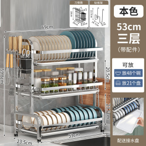 ステンレスの台所の食器棚を厚くして、水を切って棚の多機能の台の上に箸の皿を置いて、物かごの食器棚を置きます。