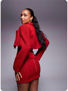 国境を越えた欧米の小さな香風スーツの女性秋冬の新しい綿のコートの半身のスカートの気質の優雅な2つのセット2025