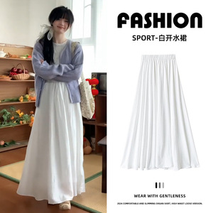 白色半身裙女中长款春秋2025新款高腰显瘦a字裙温柔风蓬蓬仙女裙