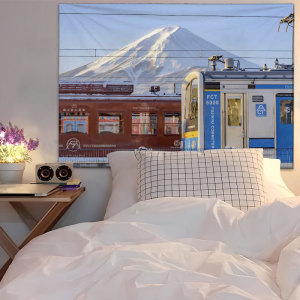 富士山雪山背景吊り布雰囲気リビングルームベッドルームタペストリールームレイアウトベッドサイド壁背景布