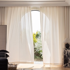 法式经编麦芽镜面纱帘防晒透光不透人客厅阳台卧室高级感奶油风