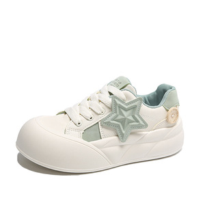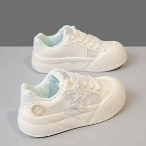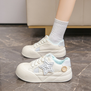 女性用スタースニーカー、厚底身長アップホワイトシューズ、2025年春秋新作、学生向け万能カジュアルパンシューズ