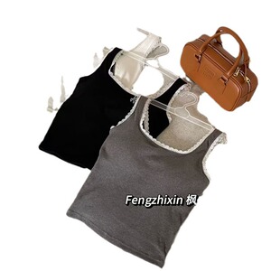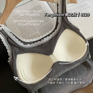 Fengzhixin 8129 レースのコントラストカラーのベスト、胸パッド付き、ボトムスとしてもアウターとしても着用可能、女性用サスペンダートップ、美しい背中、夏に涼しい