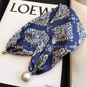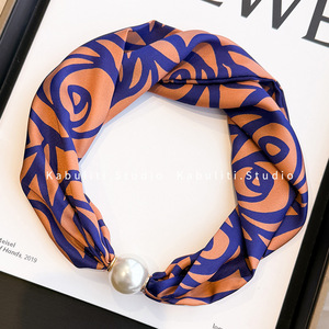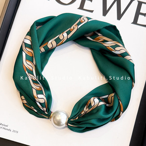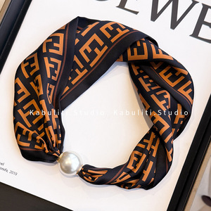 磁気バックルパールネックレス、細いロングシルクスカーフ、女性用ネックプロテクター、シャツスカーフ、ガーゼスカーフ、薄いスカーフ
