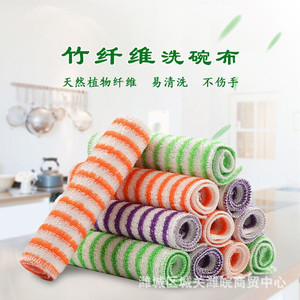 カラーストリップ 18*23 ノンスティックオイルディッシュタオル繊維キッチンたわしストライプ竹繊維クリーニングタオル吸水性と除染