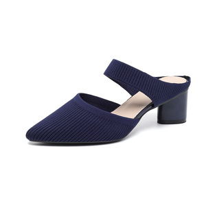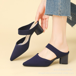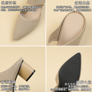 669-3包頭後の空の靴の女性2025の新型の先の浅い口のハイヒールの外は太いかかとのミュラーの靴の中でかかとを着ます。