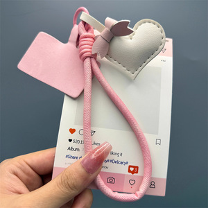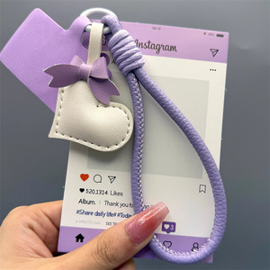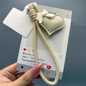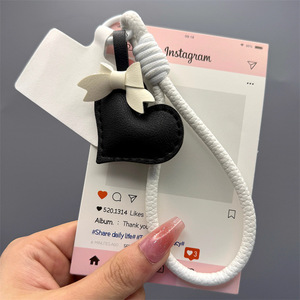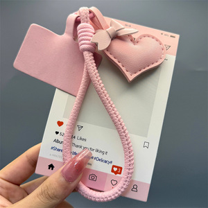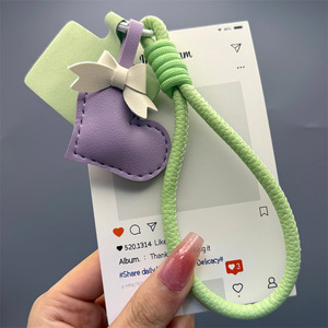 ドーパミンコントラストカラー携帯電話ストラップショートラブリボンペンダント織革ハンドロープバッグキーホルダー紛失防止