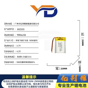 102535/900mAh バッテリーセル (保護基板コンセント付き)