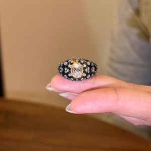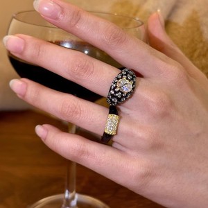 黒楕円超フラッシュリング女子2025新型起爆軽贅沢高級感指輪小衆設計食指戒