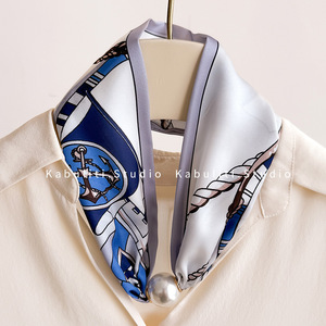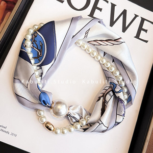 磁気バックルパールネックレス、細いロングシルクスカーフ、女性用ネックプロテクター、シャツスカーフ、ガーゼスカーフ、薄いスカーフ