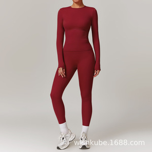 クロスボーダー女装両面磨毛ガードル通気純色トレーニングヨガ服スポーツランニングトレーニング服2515