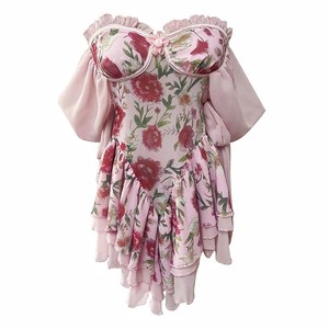 18YX2272 ヨーロッパとアメリカ 2025 越境貿易甘いホットガールチューブトップ花柄シフォンウエスト大きな裾ドレス女性のための