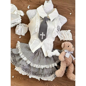 甘くてキュートなカレッジスタイルの小柄なJK制服デザイン中空半袖シャツハイウエストケーキチュチュスカート女性用
