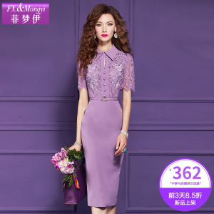 Feimengyi オリジナルレースパープルシャツドレス女性の夏のハイエンドエレガントなウエスト痩身軽くて成熟したヒップスカート