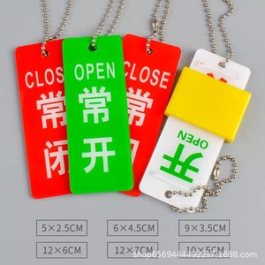 アクリル常開常閉調整バルブ開閉カードスイッチの看板の両面にチェーンの案内板を付けます。