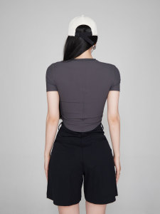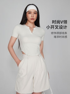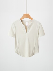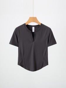 新型ヘンリー半袖女性vネック裸感羅ヨガ服修身運動tシャツショートタイプが痩せています。