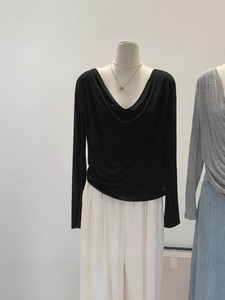 リヨセルテンセルレイジースタイルルーズ襟ルーズ長袖Tシャツ女性用2025新しいスタイルのユニークで超見栄えの良いトップ
