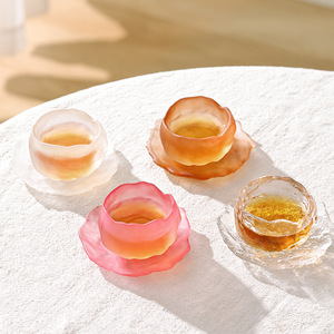 日本冷凍焼釉マスターカップシングルカップグラデーションカラーカンフーティーセットガラス断熱パッドライト高級ティーセット卸売