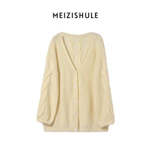 クリームイエローのニットカーディガン