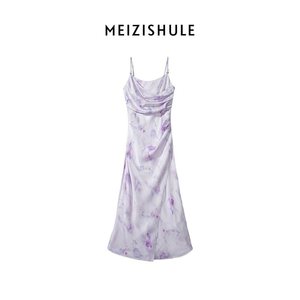 梅熟【蝶恋花】ブルーミングプリントフレンチサスペンダースカート 春開き襟花柄スカート バケーションロングスカート レディース
