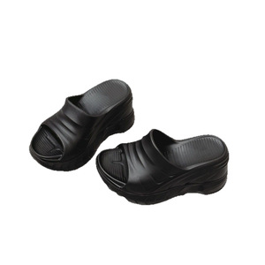広州の高品質 ~ 夏の爆発的な坂と厚い底の超柔らかい綿のスリッパの女性のファッションが高くなります。