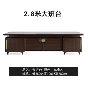 レッドサン新中国風エグゼクティブデスクブラックゴールドウッド無垢材ボスデスクログライト高級チェアマンデスク社長デスク