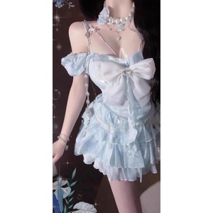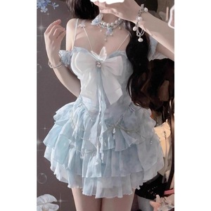 夏季绝美蓝色抹胸吊带裙蛋糕裙短裙小个子超好看仙女纯欲风连衣裙