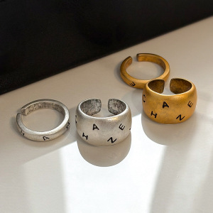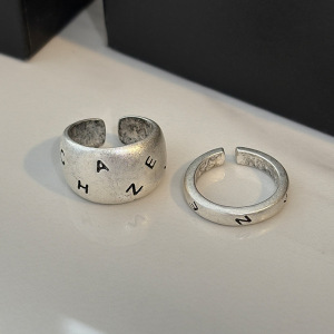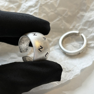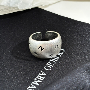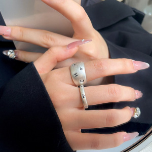 欧美复古银色字母宽窄食指戒指女高端轻奢小众设计高级小香风指环