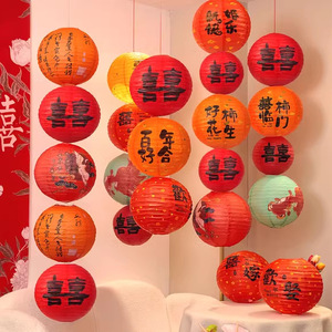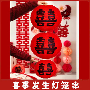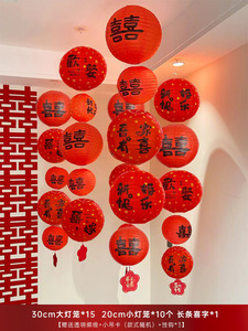 結婚式中国風の赤い提灯装飾品結婚式の部屋のレイアウトハニカムボールハッピー言葉装飾ウェディングツリーハンギング花嫁の写真の小道具