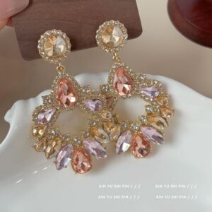 宮廷風のきらきらと輝く幾何学のダイヤモンドのイヤリングの女性の復古の豪華な高級感のピアスは誇張して個性的な設計の耳飾りを設計します。