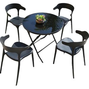 【チェア2脚】+60ブラックガラス折りたたみ丸テーブル