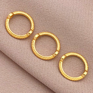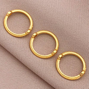 T108-12mm 内部 10mm 合金メッキ 18k リアルゴールドの強力な色保持ツイストパターンビーズリング-0.35g