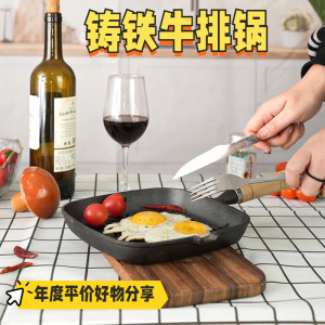 鋳鉄製木柄ステーキフライパンメーカー 家庭用ノンスティックコーティングなしステーキフライパン 正方形平底鍋