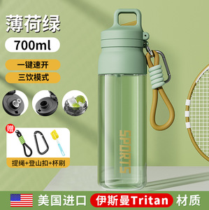 アメリカ直輸入のTritan【フォレストグリーン 700ml】カラビナ+カップブラシ+ストローブラシ付き
