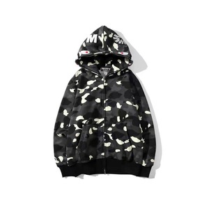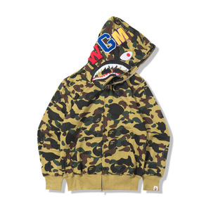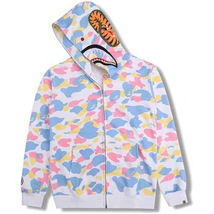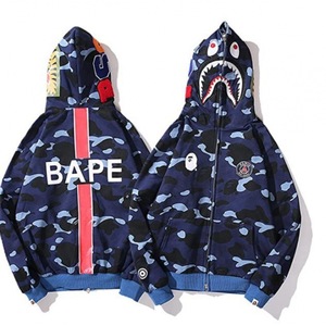 2025 [健康布] 3D デジタル印刷 Bape ブランド シャークヘッド スウェットシャツ メンズ カップル ジッパー カーディガン ベルト付き