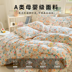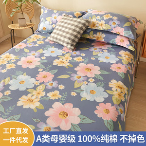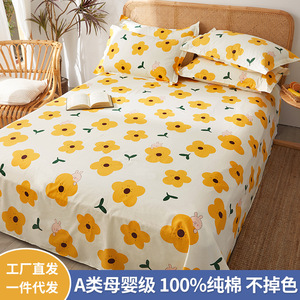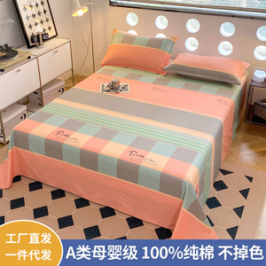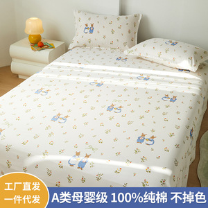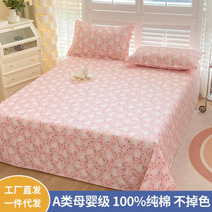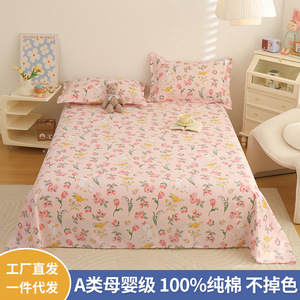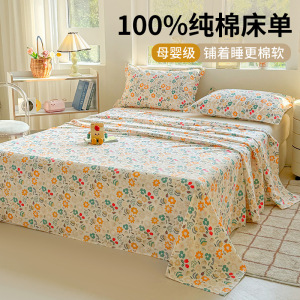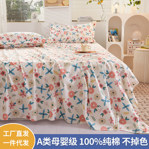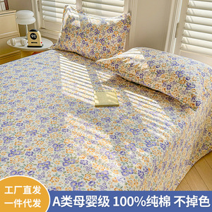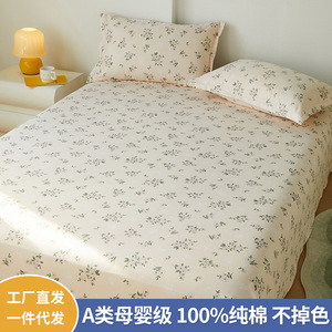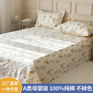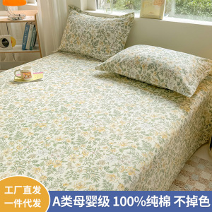 純綿ベッドシーツシングルピース綿 100 牧歌的なスタイルの寮シングルとダブル 1.5m シーツ枕カバー 2025 新しい寝具