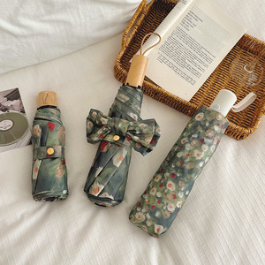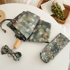 油絵の傘の黒いゴムの自動傘の日よけの折り畳みの傘のデジタル印刷の傘の小さい清新な傘の傘の図案