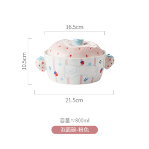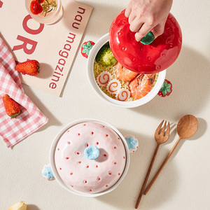 創意的な漫画のイチゴの陶磁器の泡の碗の高い顔の値は蓋の家庭の大容量の双耳のスープの碗の学生の寮の碗を持ちます。