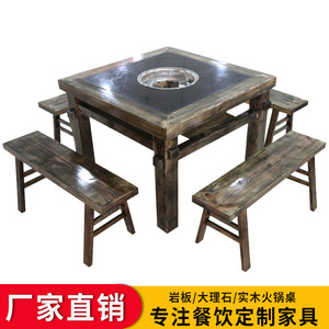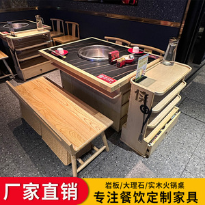 実木大理石火鍋テーブル商用中国式串香焼肉テーブル岩板鍋テーブル電磁ストーブ一体