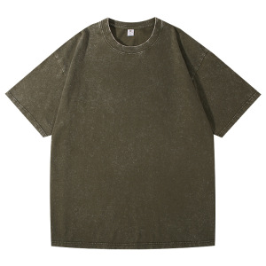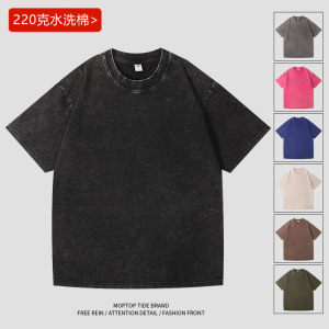 半袖男性tシャツ220g水洗いして古い重ポンド綿tシャツ作業服アメリカゆるいdiy印字ロゴ刺繍